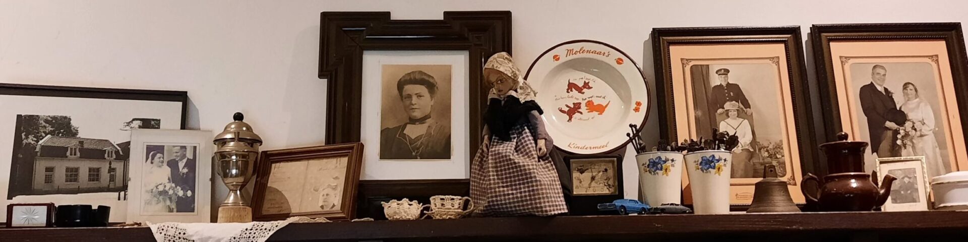 Dus nu heb ik een mooie foto van Geertje in een mooie, oude lijst. Wie weet hoe oud hij is! Geertje overleed in 1921. Gisteren was haar geboortedag, ze werd geboren op 9 januari 1886, 140 jaar geleden dus. Wat een tijd! We hebben de lijst een mooi plekje gegeven op onze antieke kapstok, waar we een soort privé museumpje hebben.